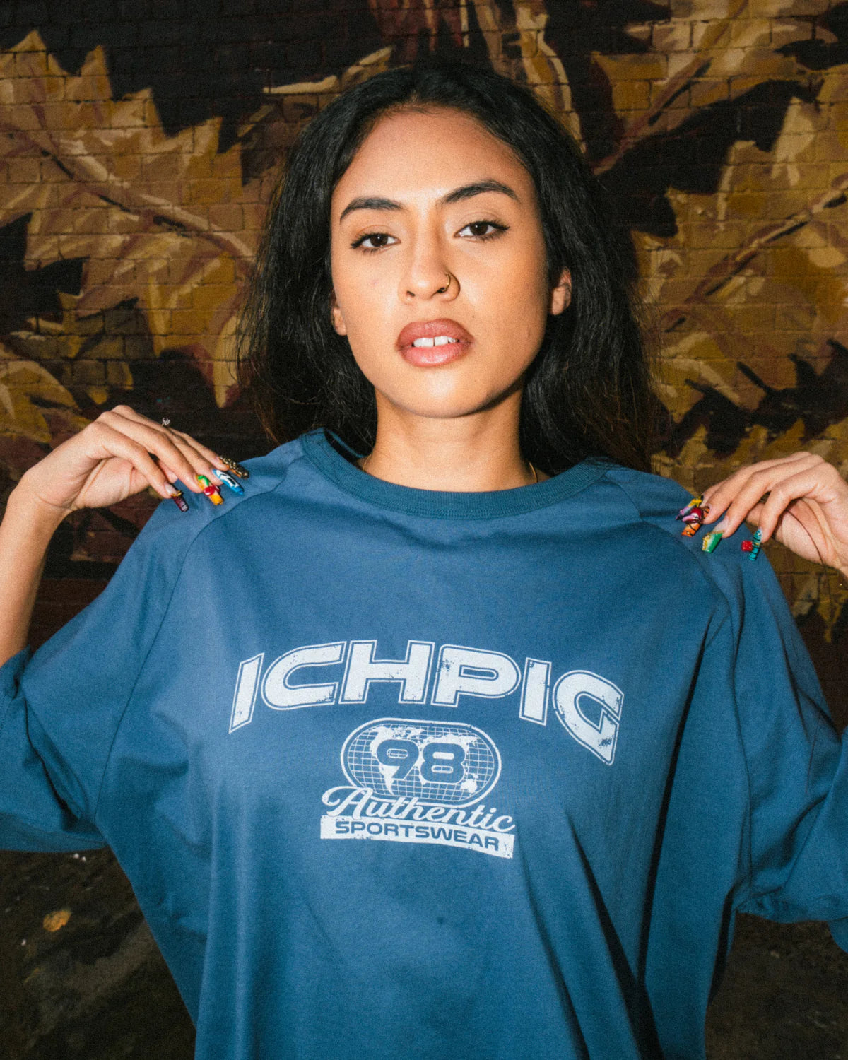 - ’98 Sports graphic screen printed on the front centre chest